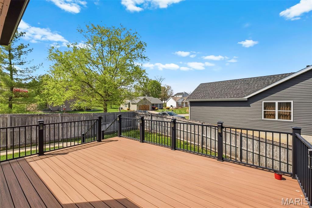 Welcome to 891 Autumn Grove Drive, a beautifully maintained and thoughtfully updated home in the heart of North O’Fallon. This property shines inside and out, with major exterior improvements completed just 1.5 years ago, including a new roof, siding, and garage door. Sitting proudly on a corner lot, the home features a privacy fence and a no maintenance deck enhanced with updated lighting—perfect for evening entertaining. The kitchen has been refreshed with new 2025 flooring, stylish cabinetry, fresh Corian countertops, and newer appliances, including a refrigerator that stays. The entire home has been freshly painted, including the shutters and front trellis. Inside, the split bedroom floor plan offers a private primary suite while maintaining an open, inviting layout. The primary bedroom includes a large walk-in closet and a primary suite. Newer French doors lead to the updated deck and spacious lower-level patio. Security and comfort are well covered: the seller is leaving two registered safes, an alarm system, and a newer HVAC platform. The finished lower level provides fantastic additional living space with a full bathroom, wet bar with fridge, and a flexible room ideal for sleeping, workouts, or office use—plus abundant storage. A wrap around walkway leads back to the front of the home, and the oversized two car garage adds even more convenience. Don’t miss your own chance to own this meticulous property near both public and private schools in desirable North O’Fallon.