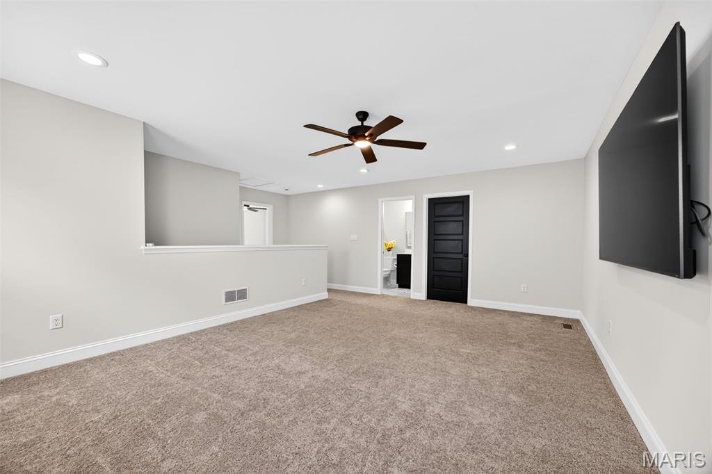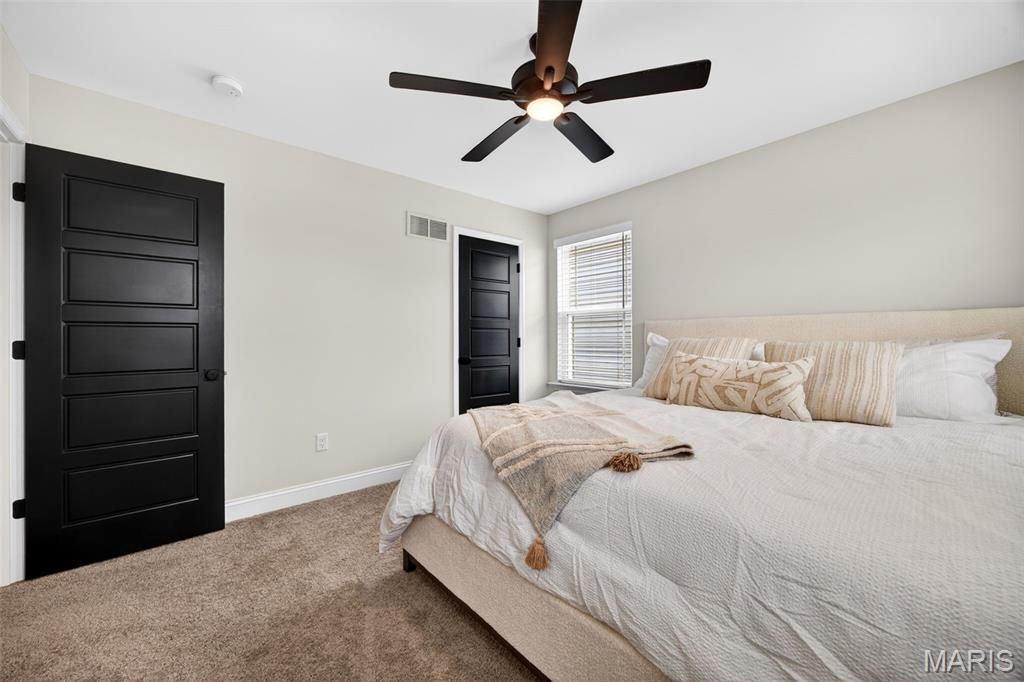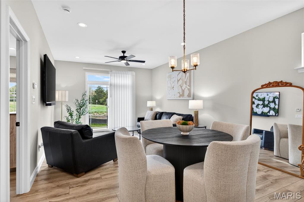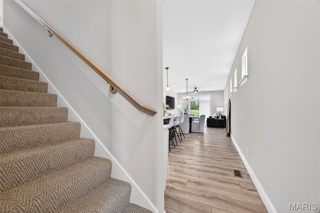 Why wait to build when you can own this stunning, one-year-old home today? This 1.5-story Dover model by F&F is filled with custom upgrades and designer finishes throughout. A welcoming foyer leads into a spectacular chef’s kitchen featuring high-end KitchenAid appliances, custom cabinetry with a built-in pantry, a spacious island, white quartz countertops, beautiful tile backsplash, and upgraded hardware. The open floor plan is perfect for entertaining, seamlessly connecting the kitchen to the dining area and spacious great room. The main-floor primary suite offers a luxurious retreat with an upgraded bath and a large walk-in closet. High ceilings with recessed lighting, beautiful luxury vinyl flooring, and custom window treatments add warmth and continuity throughout the main level, while a powder room and main-floor laundry provide everyday convenience. Upstairs, a massive loft offers flexible space for a second living area, playroom, or home office, along with two more generously sized bedrooms and a full bath. The basement includes an egress window and rough-in for a bathroom, making it ideal for storage or future finishing. Step outside to enjoy the low-maintenance new landing with stairs leading to a large concrete patio. The level yard features an irrigation system and a recently installed fence, creating a perfect outdoor space to relax or entertain. Don't forget to check out the fantastic amenities at Harvest, a master planned community featuring over 47 acres of common ground, nature play area with water feature, 13+ acre town square and civic lawn area, food truck court, orchards and pumpkin patch, community gardens, pickle ball and bocce ball courts, playgrounds, trails, and more!