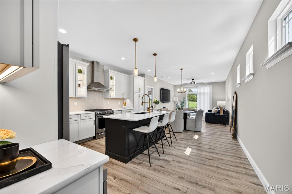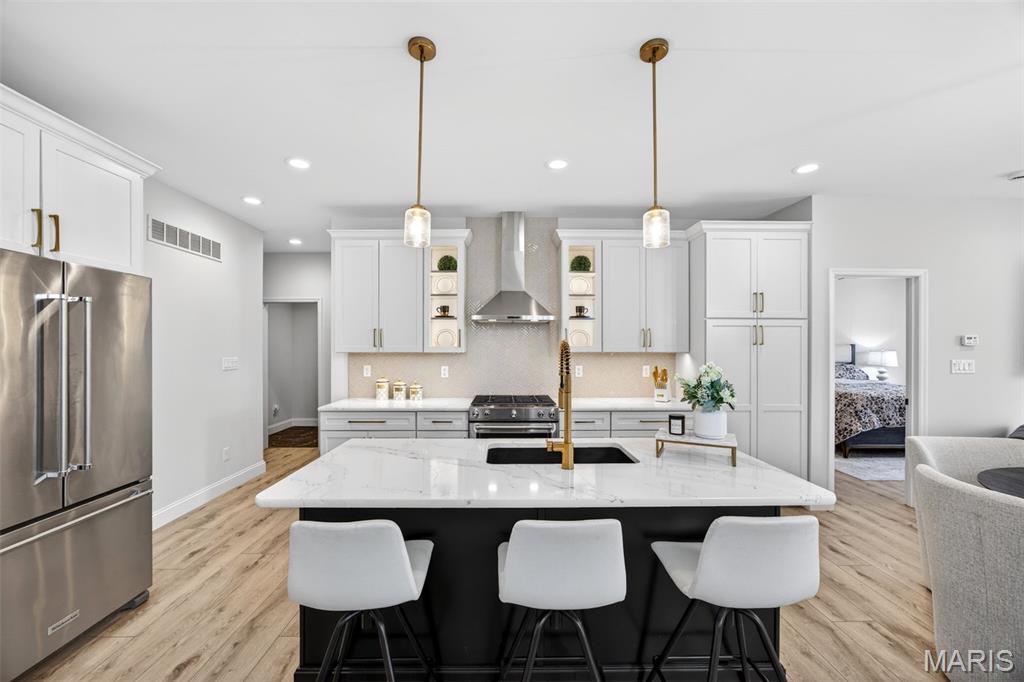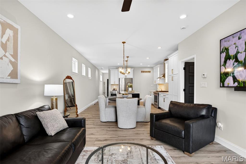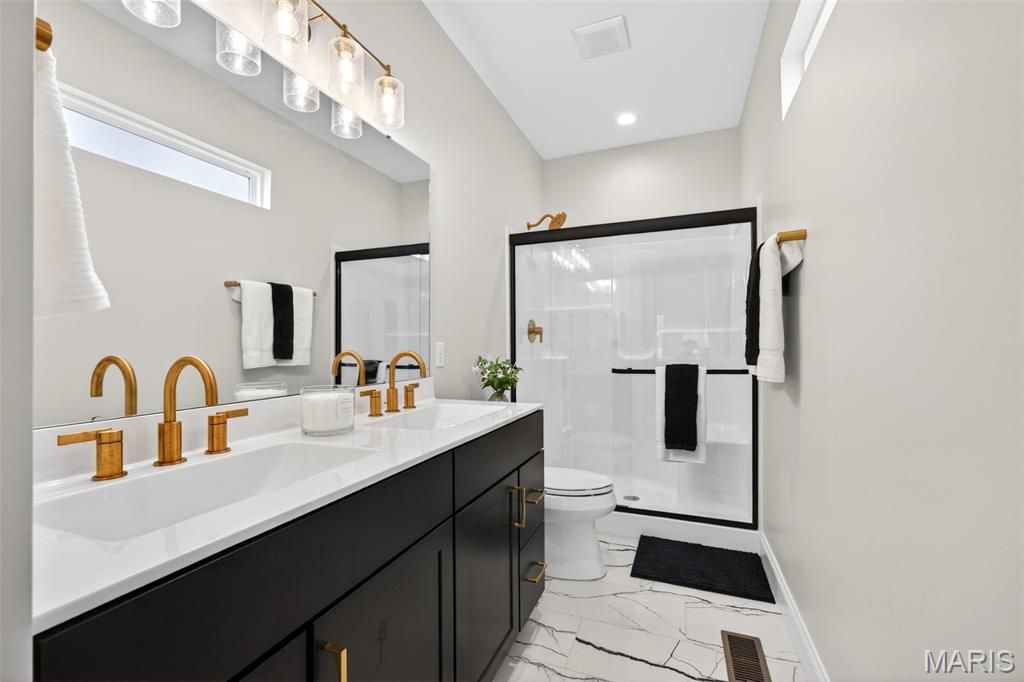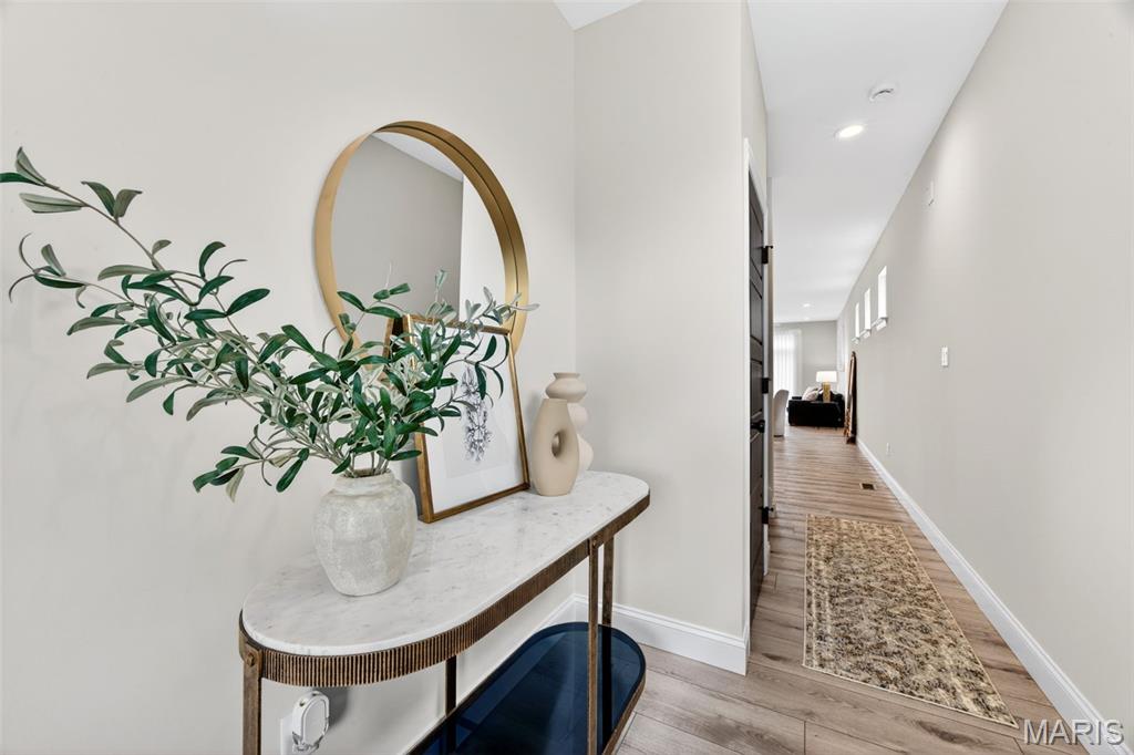 Why wait to build when you can own this stunning, one-year-old home today? This 1.5-story Dover model by F&F is filled with custom upgrades and designer finishes throughout. A welcoming foyer leads into a spectacular chef’s kitchen featuring high-end KitchenAid appliances, custom cabinetry with a built-in pantry, a spacious island, white quartz countertops, beautiful tile backsplash, and upgraded hardware. The open floor plan is perfect for entertaining, seamlessly connecting the kitchen to the dining area and spacious great room. The main-floor primary suite offers a luxurious retreat with an upgraded bath and a large walk-in closet. High ceilings with recessed lighting, beautiful luxury vinyl flooring, and custom window treatments add warmth and continuity throughout the main level, while a powder room and main-floor laundry provide everyday convenience. Upstairs, a massive loft offers flexible space for a second living area, playroom, or home office, along with two more generously sized bedrooms and a full bath. The basement includes an egress window and rough-in for a bathroom, making it ideal for storage or future finishing. Step outside to enjoy the low-maintenance new landing with stairs leading to a large concrete patio. The level yard features an irrigation system and a recently installed fence, creating a perfect outdoor space to relax or entertain. Don't forget to check out the fantastic amenities at Harvest, a master planned community featuring over 47 acres of common ground, nature play area with water feature, 13+ acre town square and civic lawn area, food truck court, orchards and pumpkin patch, community gardens, pickle ball and bocce ball courts, playgrounds, trails, and more!