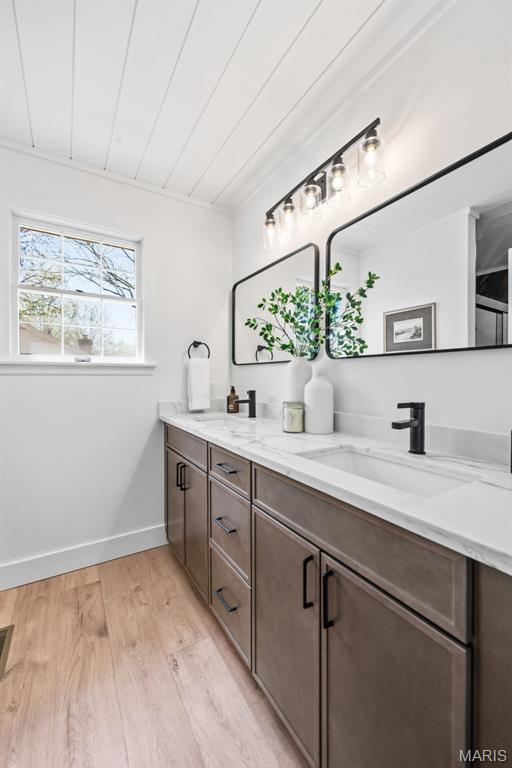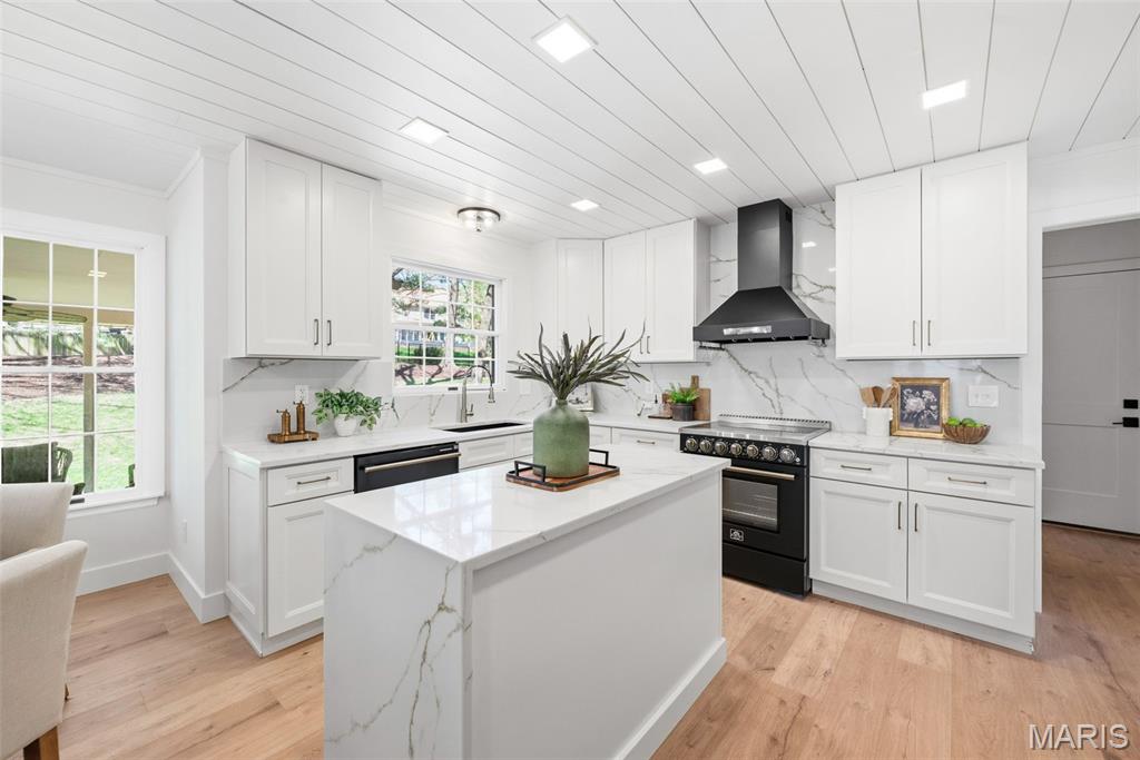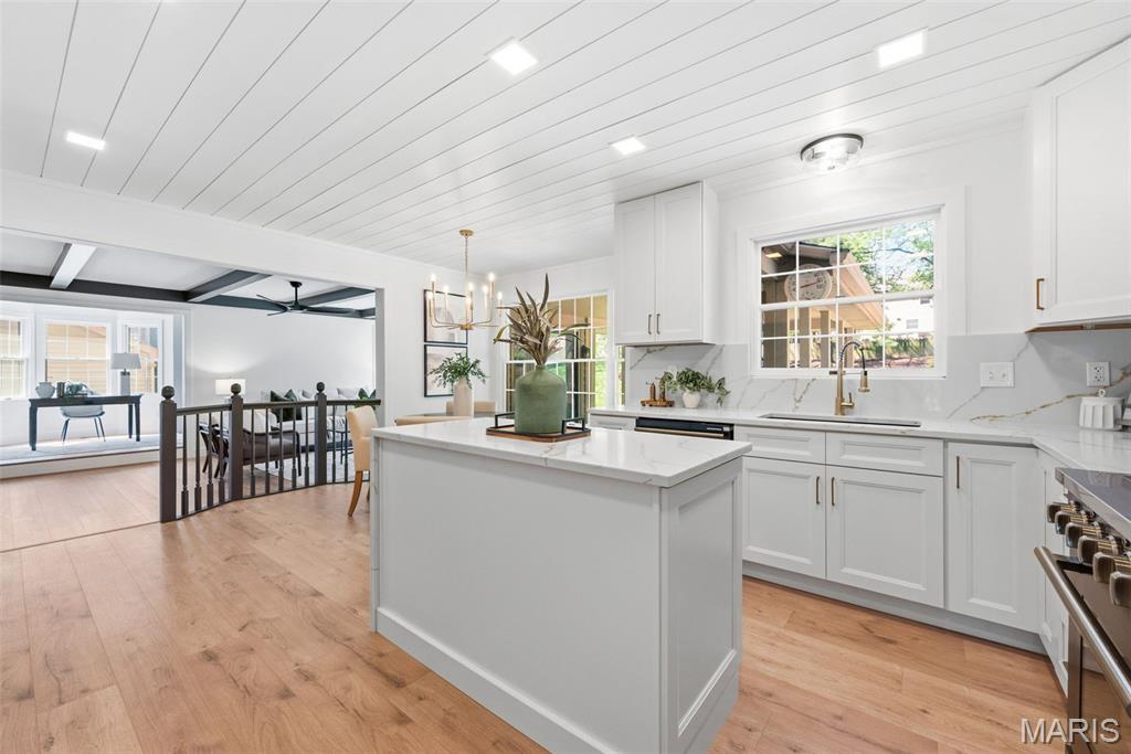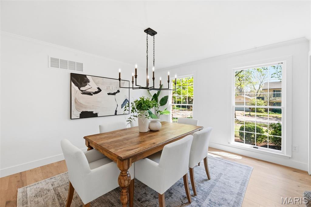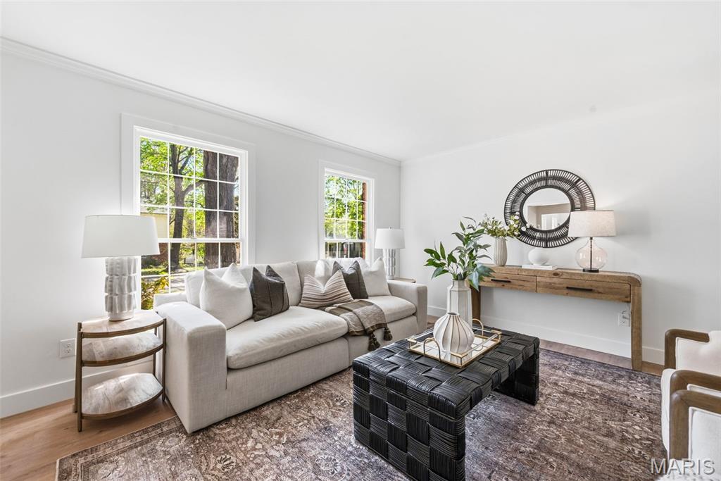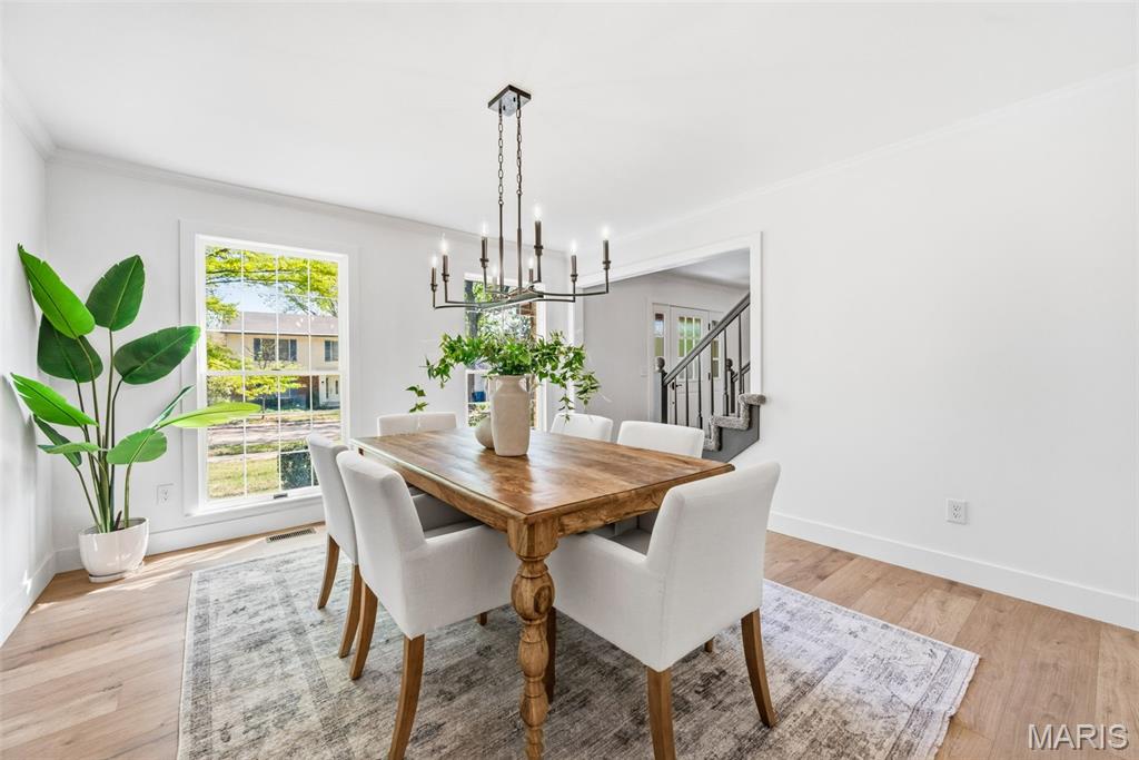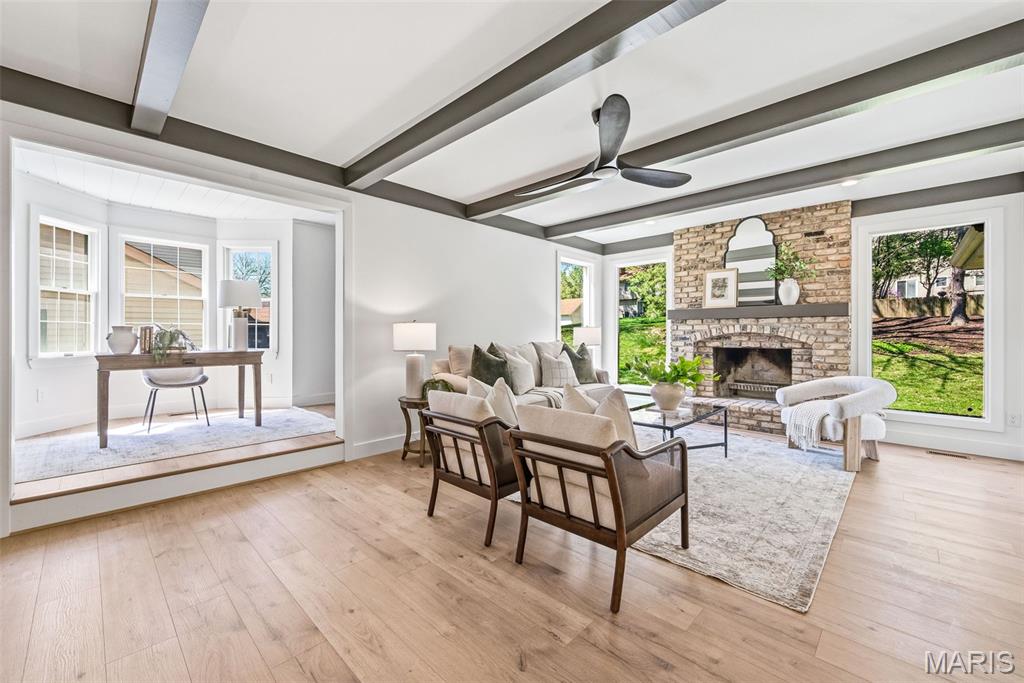 Beautifully updated 4 bed, 2.5 bath 2-story on a stunning lot with mature trees and private park-like backyard. This home offers incredible curb appeal with a brick facade, inviting covered/vaulted front porch with cedar beams and stone column bases, architectural shingles, steel siding, impressive landscaping, and an oversized rear-entry garage. Enjoy outdoor living with both a covered patio, stamped patio and massive parking pad. Step inside to a fully renovated interior featuring all new luxury vinyl plank flooring, fresh paint throughout, custom moldings and trim, and designer fixtures and finishes at every turn. The kitchen has been completely transformed with custom cabinetry, rollout pantry shelving, built-in espresso bar, black stainless appliances, range hood, waterfall island, and quartz backsplash carried all the way to the ceiling. Recessed can lighting and custom wood/shiplap ceiling details elevate the space. The main floor offers a spacious living/flex room, formal dining, private office/library with bay window and built-in bookcases, and leads to a sunken family room highlighted by a beamed ceiling and floor-to-ceiling brick fireplace. Upstairs, the primary suite features double-door entry, cozy fireplace, walk-in closet and luxury bath w/ his/hers vanity and oversized shower. Additional highlights include Andersen windows, dual HVAC systems, humidifiers, 2-panel doors, and an oversized 24’10” deep garage with insulated door and service door. Located in a highly desirable area with top-rated schools and easy highway access. 2,721 sq ft of updated, move-in ready living.