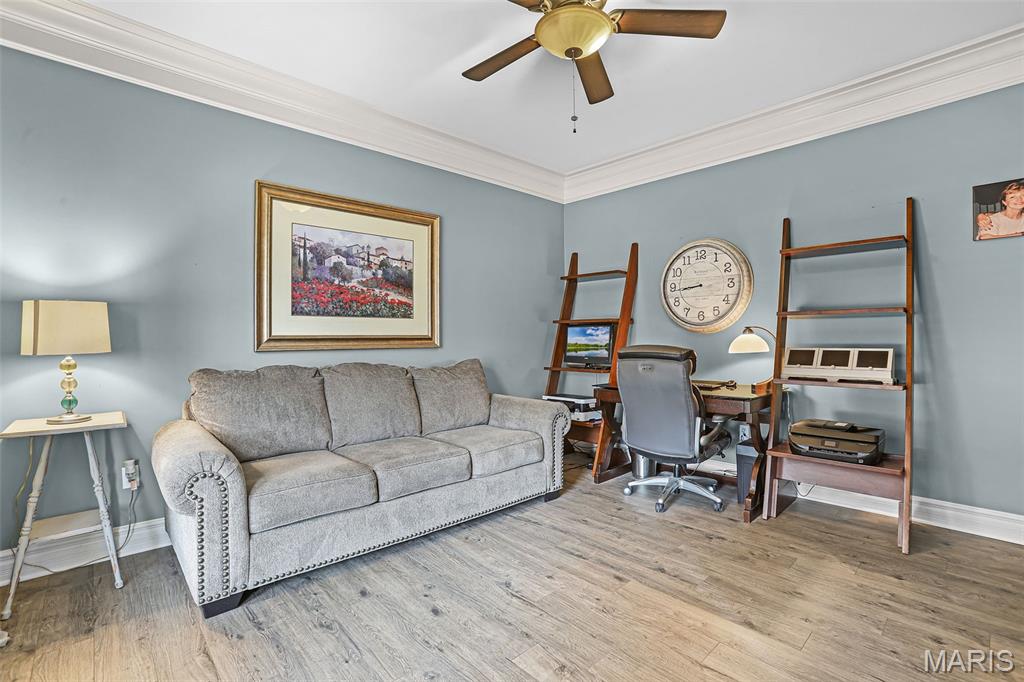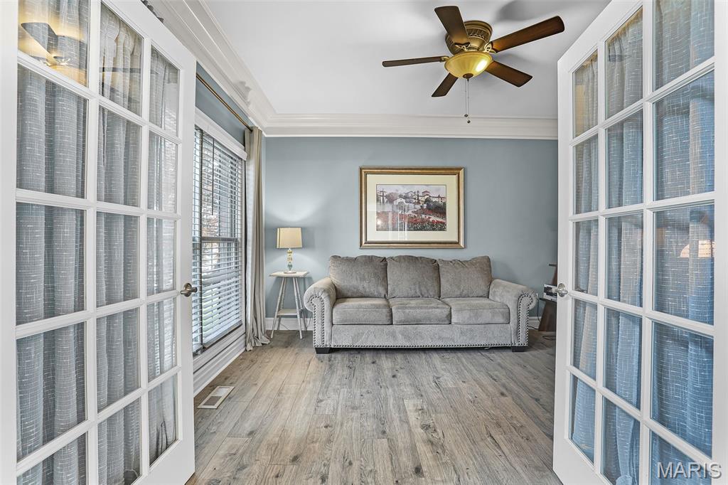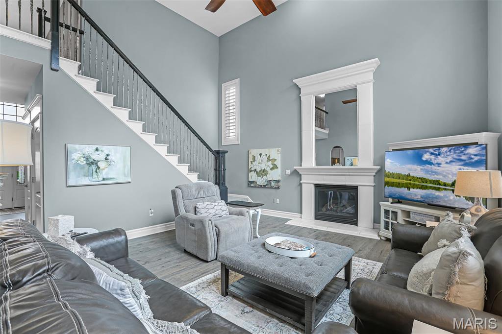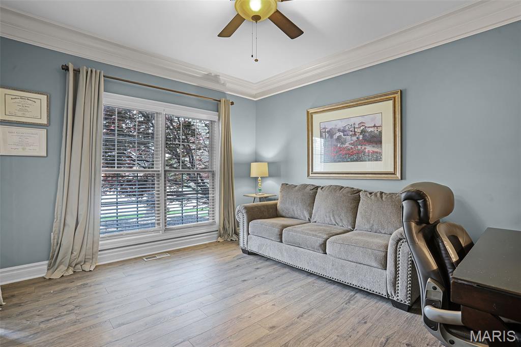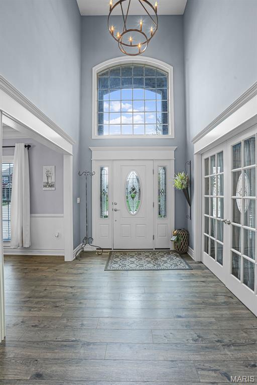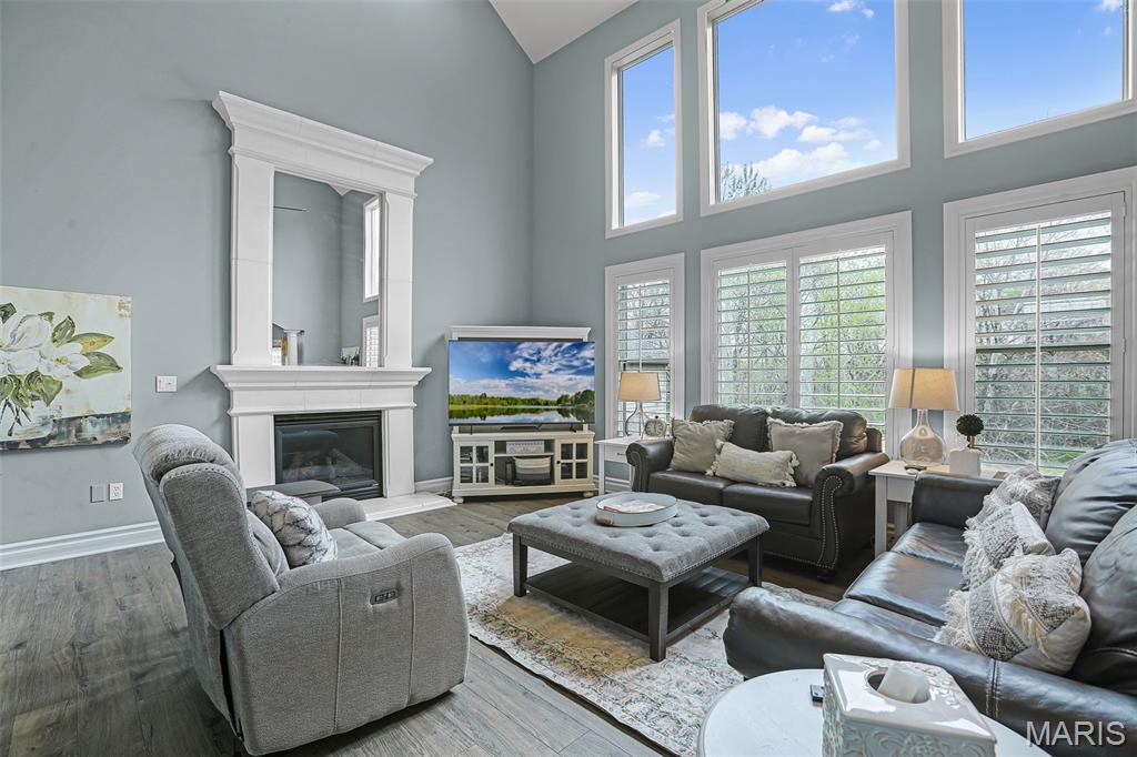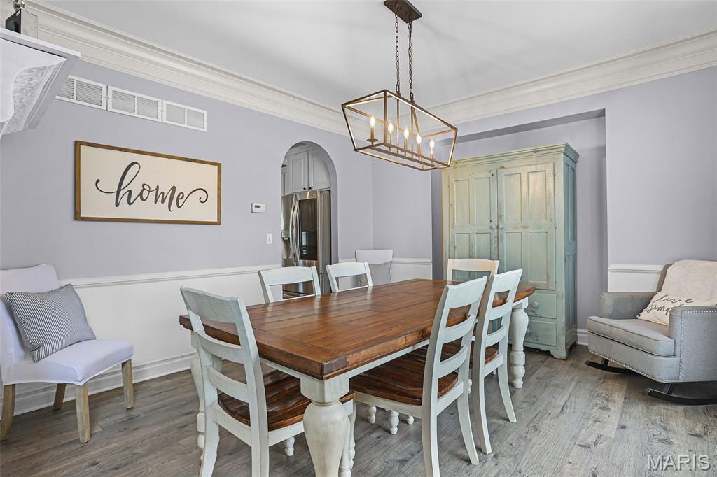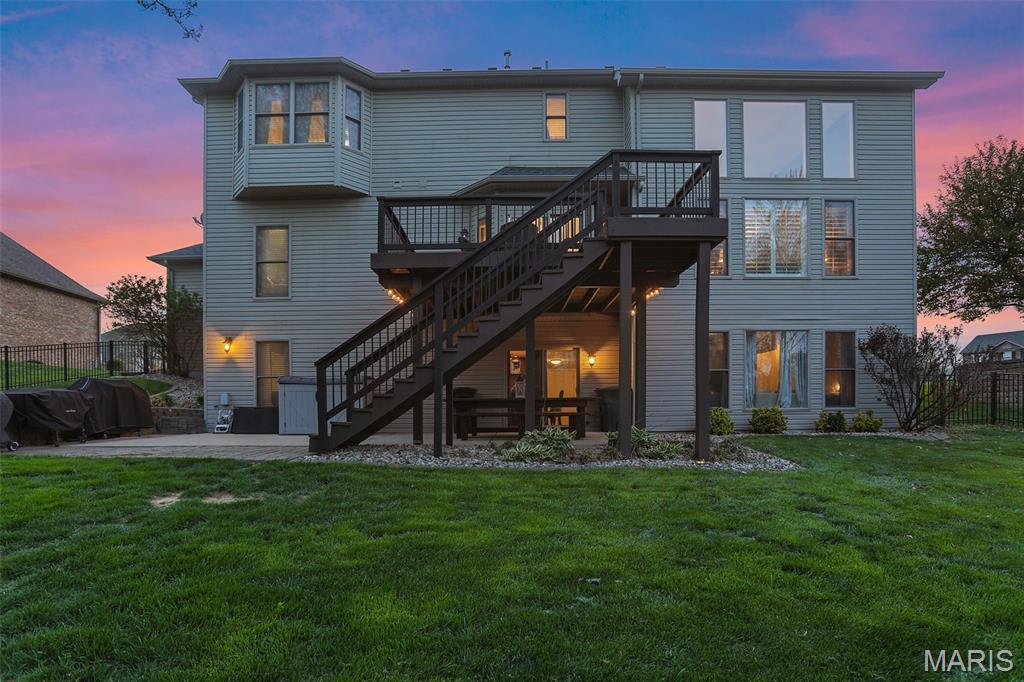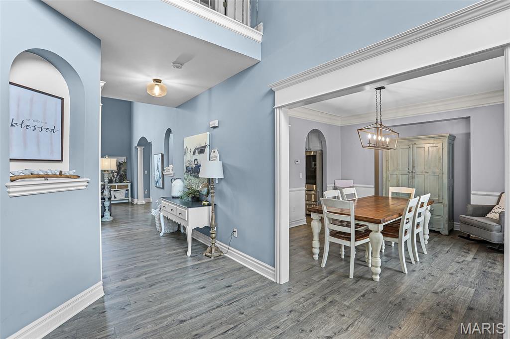 Set on over half an acre of wooded privacy, this stunning 2-story home offers a lifestyle of serenity & elegance. A fenced yard, composite deck & covered patio create the perfect setting for morning coffee & peaceful moments surrounded by nature. Inside, architectural character shines w/ graceful arched openings, column accented passages, soaring ceilings & a sweeping open staircase. The impressive foyer is flanked by a formal dining room & French doors leading to a formal sitting room/office. The 2-story great room is filled w/ natural light from a wall of windows & anchored by a stunning gas fireplace, creating a warm & inviting space for relaxing or entertaining. The eat-in chef’s kitchen features granite counters, large center island for preparing meals, stainless appliances (new fridge, stove & microwave ‘25) & custom cabinetry. Rich hardwood floors & thick crown molding add timeless appeal throughout. A flexible main level room can serve as a bedroom or private office. Upstairs, an open hallway overlooks the dramatic foyer & includes spacious bedrooms, a full bath & the primary suite; a private retreat w/ recessed ceiling, wooded views & a truly luxurious spa bath with a grand alcove soaking tub, dual vanities & large divided walk-in closet. The finished walkout lower level is made for entertaining & includes a family room, wet bar, full bath, private bedroom & flex room w/ built-ins that can serve as a 6th bedroom. Prime location close to schools, shopping & the YMCA.