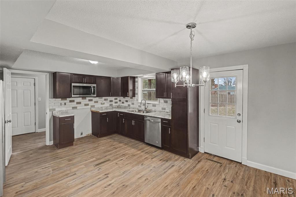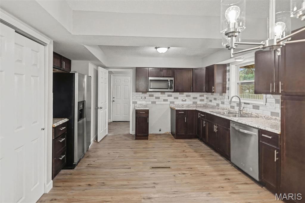Location! Location! Location! This beautifully refreshed 4-bedroom, 2.5-bath home in the O’Fallon School District offers nearly 2,100 sq. ft. of thoughtfully updated living space designed for today’s lifestyle. With excellent proximity to the interstate, shopping, dining, entertainment, Scott Air Force Base & downtown St. Louis, this is a Must See! From the moment you step inside, you’ll notice the bright, modern feel created by fresh paint, brand-new carpet, and stylish updated lighting throughout. The spacious open concept main living area is well lit and versatile offering many options for living room & dining room furniture placement designs. The space welcomes you with a cozy fireplace—perfect for relaxing evenings. The kitchen is filled with natural light and offers the perfect setup for everyday living, featuring a tile backsplash, large pantry, included appliances, and space for a charming breakfast nook. Step outside to the patio and partially privacy-fenced backyard—perfect for entertaining, play, or peaceful mornings. The main level offers incredible flexibility with a spacious bedroom, updated half bath, and convenient main-floor laundry. The bonus bedroom could also be a perfect home office, or multi-generational living space. Just beyond the living room natural light abounds in the sunroom which offers versatile bonus space—perfect for a reading space, office, playroom, or alternate dining location. Upstairs, you’ll find three additional bedrooms, including a primary suite with its own private bath, all designed with clean, timeless finishes. An updated hall bath serves the remaining bedrooms. Major updates provide added peace of mind, including a brand-new roof (2025), plus furnace, windows, and siding replaced in 2016. A 2-car garage and spacious backyard complete the package. Fresh, functional, and move-in ready—this home is ready for its next chapter. Schedule your tour today! Open House Sunday the 19th from 12-130pm!